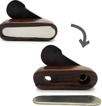 ストレージ付きの木製ハンドパイプ。