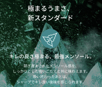 研ぎ澄まされたメンソール感を、しっかりとした吸いごたえと共に味わえます。吸い終わったあとは、シャープでキレ良い後味を感じられます。