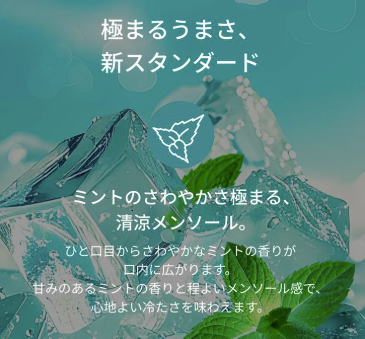 ひと口目からさわやかなミントの香りが口内に広がります。甘みのあるミントの香りと程よいメンソール感で、心地よい冷たさを味わえます。