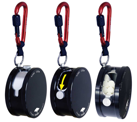 ストッパーを兼ねたツマミを回してスライドオープン。